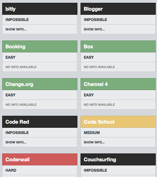 ある意味、JustDelete.Meは、作ったことも忘れてしまったアカウントのことを 思い出させてくれるセキュリティツールであるだけでなく、登録した自分のデー タを削除させてくれないサイトを知る便利なツールでもあるわけです。